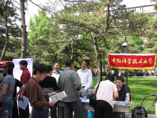 吴刚总结了北京招生的两点体会:一是充分发动校友志愿者。2007年,在科学院读研的校友甚至做论文的大四本科生中有66人次的志愿者参加招生咨询。他们献身说法用对科大深厚的感情、真诚的语言,打动了很多考生和家长。二是详细详细北京毕业生去向,在新创基金建议下,北京招生组在收集到03级(07届)北京籍考生毕业去向信息,并制成了2套大型挂图公布在招生咨询现场。2007届北京籍毕业学生34人,其中19人获得全额奖学金出国留学;9人国内深造,6人工作。吴刚称,毕业生的理想去向,成为招生最有力的武器。在招生咨询场合,科大敢说我们是把学生培养得最好的高校,“连‘之一’我都不加”,吴刚强调。