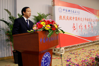 朱清时说,在本次庆典活动期间,来自全国各地的教育界同行与我校的少年班教育实践者们热烈研讨了少年班的办学情况,提出了许多宝贵意见,与会代表普遍达成共识,中国科大少年班为智力超常的少年提供了一个很好的成才环境,少年班办学是一项非常有意义的教育探索。他表示,少年班的进一步发展目标,就是要为国家培养基础雄厚、具备多学科交叉知识背景、适应能力强的跨学科创新人才。他希望未来的少年班能走出更多的创新英才和科技领军人物,在中国科大创建一流研究型大学的进程中,为建设创新型国家做出更大的独特贡献。