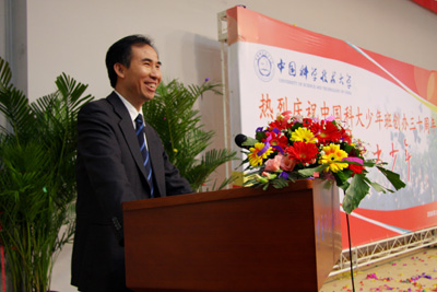 朱清时校长在致辞中指出,少年班是中国科大的创新精神的典范,是中国科大荣誉王冠上的宝石。他说,作为一项教育创新,少年班三十年风风雨雨,一路走来,非常不易。遵循教育规律,始终坚持创新,永远追求卓越,是少年班办学成功最本质的原因。同时,少年班的成长与发展一直得到党和国家领导人、国内外教育家、科学家以及社会各界有识之士的悉心关怀和热烈支持,在此,谨代表学校向社会各界给予少年班的关怀和支持表示衷心的感谢。