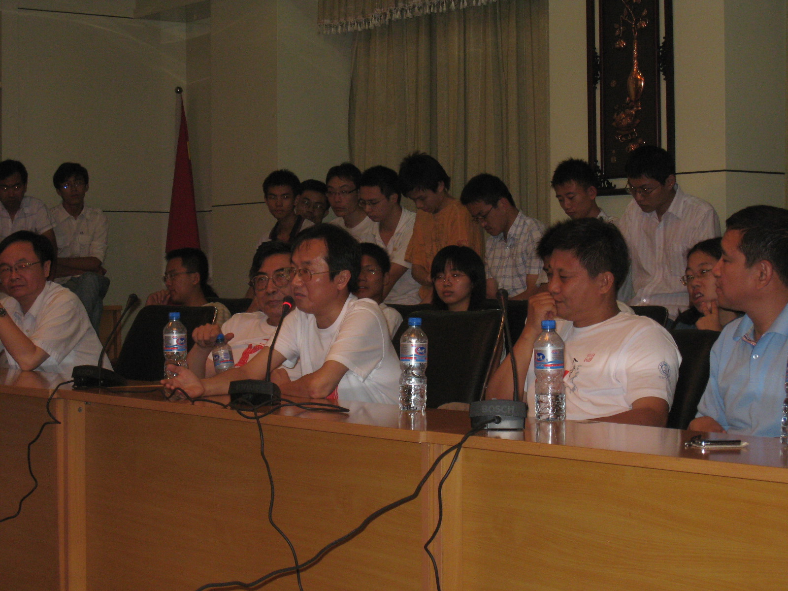 7月18日,了解到同学与校友交流的愿望之后,772校友临时决定在19日下午举行座谈会。774校友也派国立台湾大学物理学教授何小刚来到座谈会现场。 尽管有参观物理系等冲突行程,782或78少的彭兴(佳能公司)、吴彦、聂文江(法国圣戈班中国区总裁)、翁征宇(清华大学杨振宁讲席教授)、穆荣平 (中科院科技政策与管理科学研究所所长)、姜晓明(中科院高能物理所副所长)等也到现场与同学交流。出席座谈会的772校友有刘骊松(睿励科学仪器软件工程总监)、张洪、曹效业(中科院副秘书长)、单文钧(中科院固体物理所副所长、原马鞍山市副市长)、周先意(中国科技大学人事师资处处长、理学院教授)。