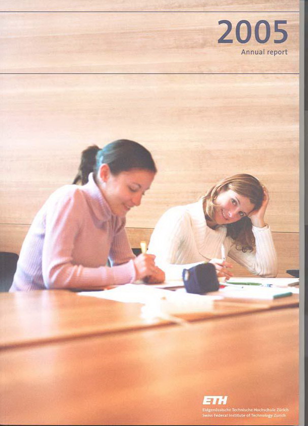 引自瑞士联邦理工学院苏黎世分校(简称ETHZ)2005年年报封面。图书馆学习的女孩回眸一笑?