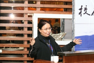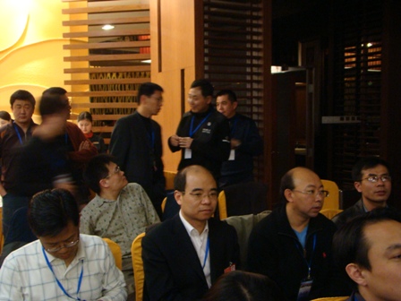图为出席会议的吴亦兵(右)、翁海琴(左)夫妇。吴亦兵、翁海琴都来自858,2008年8月27日,吴亦兵在离职麦肯锡前夕, 向中国科技大学”新创讲席教授“捐赠100万元。侯建国在活动中致谢,全场校友用掌声感谢吴亦兵在”艰难时世“中给母校的支持。 (摄影:冯侦探)