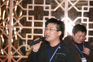 荆阳(906)唇红齿白,满面红光,气色不错。荆阳为会议提供了一台投影仪,节省了300元会务开支。