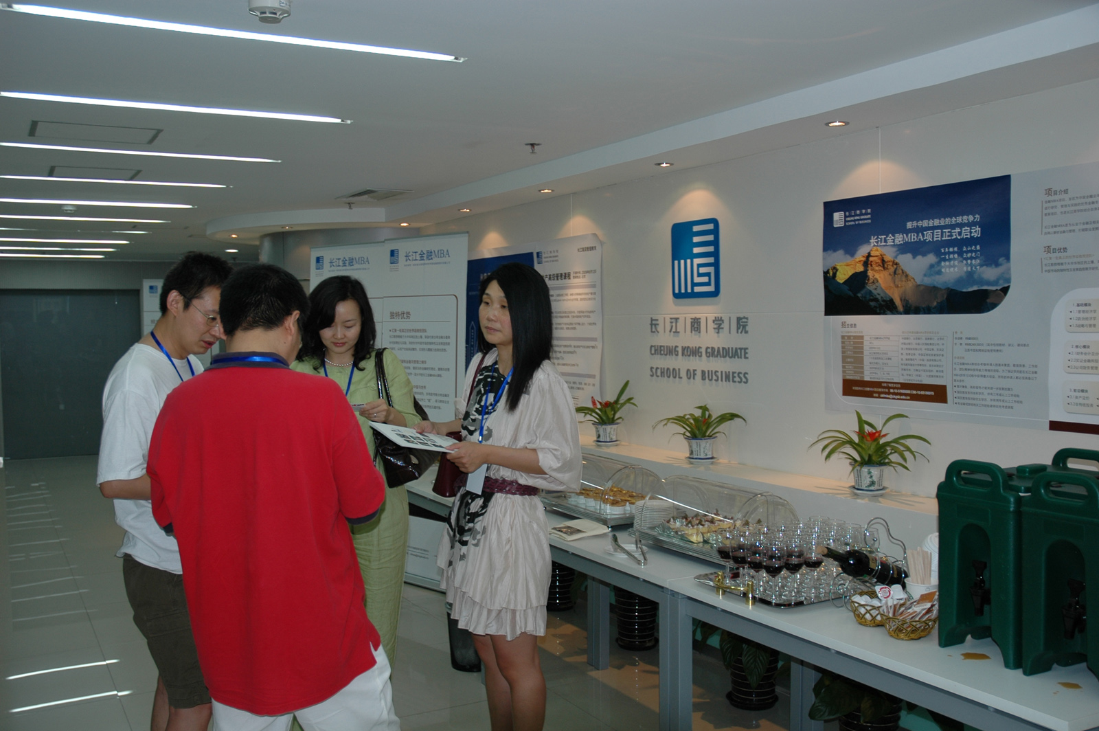 百度公司商业分析部总监诸达晨(9300、斯坦福大学博士)向曹辉宁教授提问:长江的MBA有无中国特色? 画面第一排右二黑色衣服者为87少叶一火(阿里巴巴中国雅虎口碑网负责人),长江商学院EMBA在读学员。龙门阵的前一天,他在同一间教室上课。