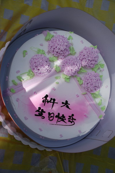 劳苦功高的05级蛋糕敢死队员们正在分发蛋糕。王以韶(图中镜头近处,玉臀高耸者)立即将脑袋伸到蛋糕边,边挖边吃。