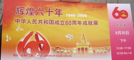 9月30日的建国60周年成就展门票。