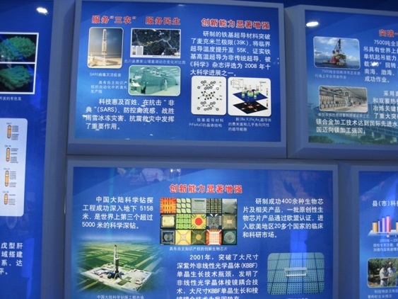 除“中国科技大学”字样在科教展区出现两次之后,在科教展区大约15个展示点(图片、展品或演示)均与中国科大相关。尽管这些难以为局外人了解,但中国科大人应当感到自豪——在多个成就展点,中国科大非项目唯一单位,即重要参与者。