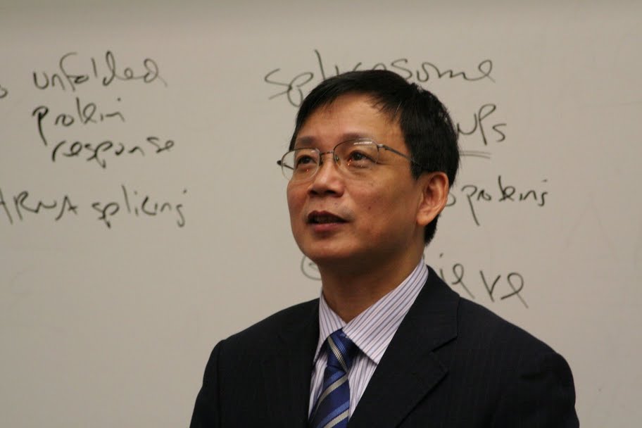 Temple大学为科大举行的招待会。左起刘万东(物理学院执行院长)、Xiaoxing Xi、戴海龙教授。