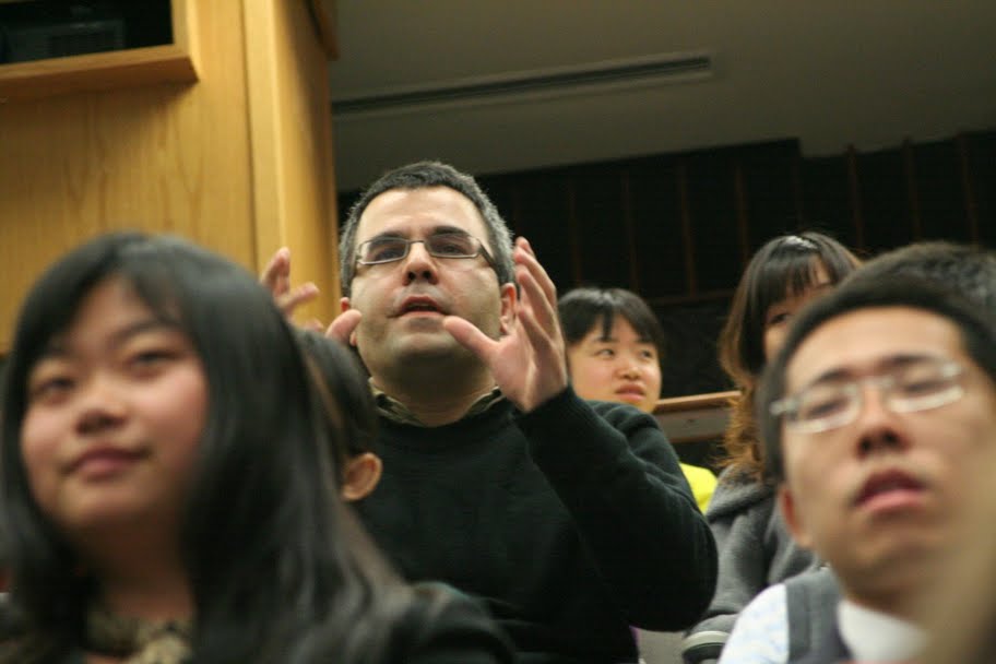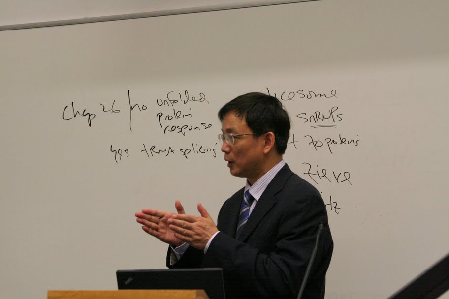 晚6:30,中国科大代表团在宾州大学进行校友见面暨招聘说明会。窦贤康副校长向现场的50余位华人学者与校友介绍了中国科大的发展态势与对人才引进的强烈渴求。宾州大学教授李巨也来到现场。李巨是中国科大90级少年班校友,曾获得美国青年科学家总统奖、美国材料学会青年科学家奖。他带领多位学生来到现场表达对母校的支持,他的数位博士生也正考虑前往科大工作。 一位毕业于统计金融系的年轻女生直率的提问管理学院对学科包括金融管理学科的发展规划。几位来自北京大学、吉林大学的学者期望前往微尺度国家实验室工作。窦贤康表示中国科大是开放高校。窦贤康、刘亚东等教授在会后与几位学者深入交谈,解释科大的人才招聘、科学研究与生活待遇。一位年轻女生介绍她们夫妇是北京大学物理系同学,窦贤康等人邀请他们回国优先考虑中国科大,因为物理是中国科大的王牌学科,科研气氛良好,且拥有和她们方向类似的团队,利于开展合作交流。有人打趣“夫妻都来是分两套房还是一套?” 窦贤康笑着回应“一套”,“哦,那你们可以省了一套房嘛”。