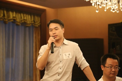 赵晓东(8412,美利肯化工亚洲区总裁)发言中。赵晓东自豪的介绍公司不少创新来自科大校友的贡献。