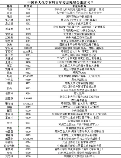 聚会的缘起是陈鸥(9903,布朗大学化学系助理教授)回京探亲,期待与同行校友相聚。他吃惊的发现见到了40多人。——化学材料是中国科大的优势学科。在清华北大中科院云集了一批中国科大校友教授。李骞(0208,科学院化学所副研究员)受北京校友会委托,召集了北京上海苏州合肥深圳等城市的化学材料青年翘楚。当天有超30位化学材料领域的校友教授(包括10余位杰出青年基金、优秀青年基金、青年千人入选者等)出席。而化学、化工与环境等方向的工业多位校友也从深圳、上海、苏州赶来。这是8月以来,中国科大北京校友会连续第二次组织行业校友活动。包括陈超(807,深圳诚达科技董事长)、张乃斌(823,星贝达化工材料总经理)、刘泽军(833,高能时代环境副董事长)和金旭(0203,苏州瀚海化学董事长)等人。